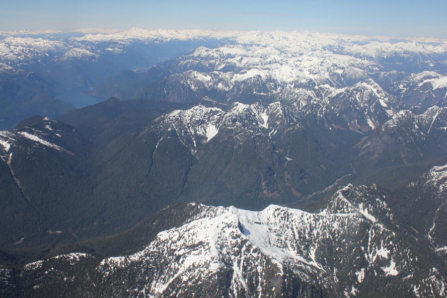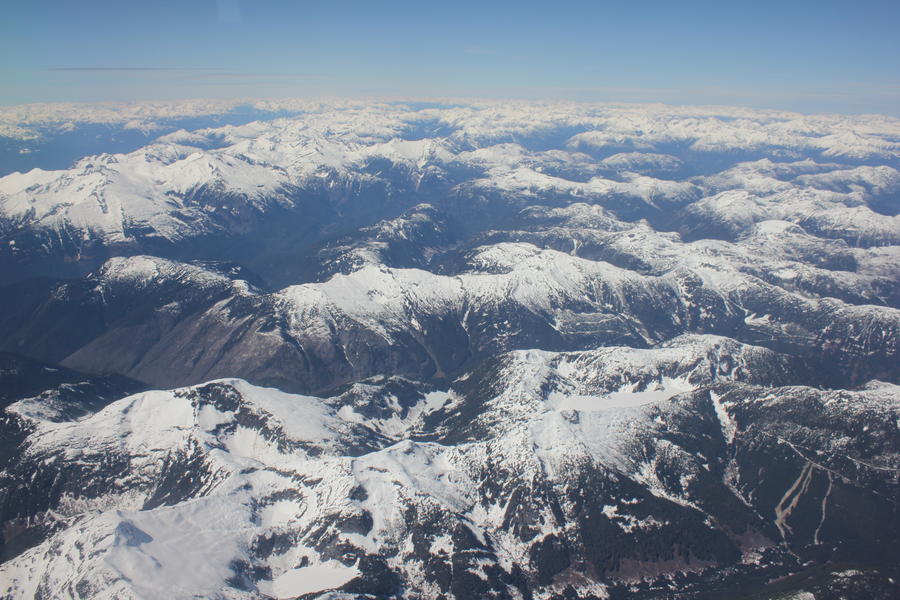 Endlich Urlaub - morgens noch schnell packen und dann gehts um halb neun los Richtung Flughafen Hannover und von dort über Frankfurt nach Vancouver. Der Flug aus Hannover hatte etwas Verspätung, aber davon abgesehen ging alles super gut und schnell, sowohl in Hannover als auch in Frankurt und Vancouver. Auf dem Flug nach Vancouver saß ich neben einer netten Dame aus Vancouver, die ihre Enkel in Wien besucht hat, und wir haben uns in einer bezaubernde Mischung aus kanadischem Englisch und Wienerisch-Deutsch unterhalten. Über Grönland und dann aber vor allem über den Bergen in Kanada hatten wir eine grandiose Aussicht.