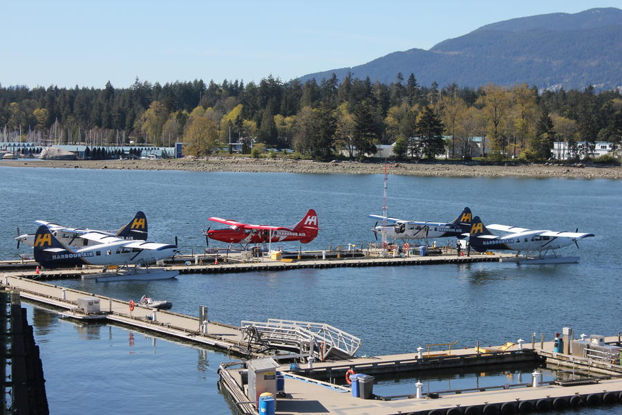 Die Maschine war überpünktlich, sodass ich zur offiziellen Landezeit schon aus dem Sicherheitsbereich des Flughafens war. Und Vancouver hat dabei einmal mehr demonstriert, dass sie wissen, wie man Immigration-Prozesse effizient organisiert - ganz im Gegensatz zu ihrem südlichen Nachbarn. Vom Flughafen ging es einmal direkt vor an den Hafen - ich war ein bisschen zu früh dran für den Check-In im Hotel. Daher bin ich einmal zu den Wasserflugzeugen vorgelaufen und habe einen Blick nach Nord-Vancouver geworfen. Dann ging es aber erstmal ins Hotel, Gepäck loswerden.