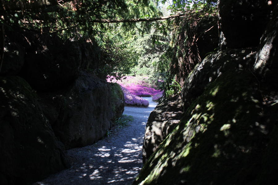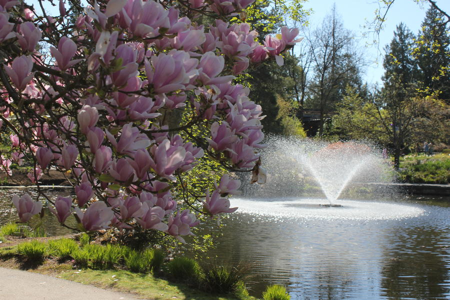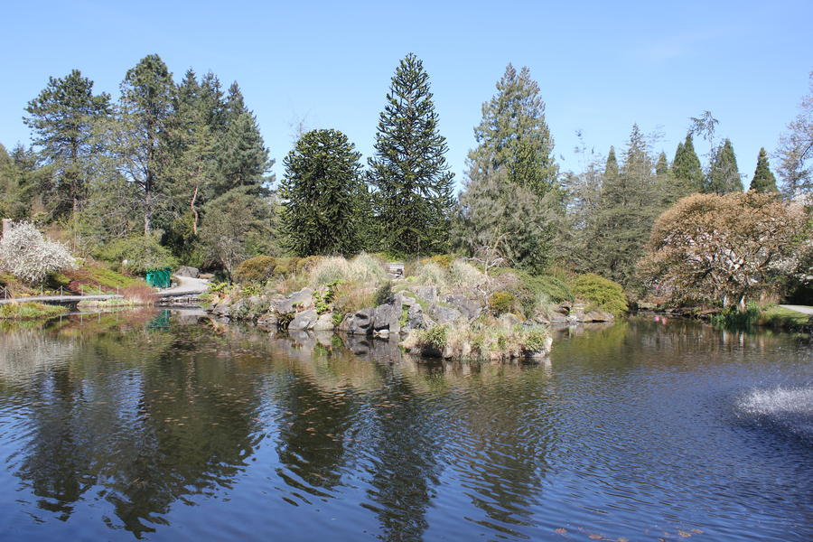 Heute sollte das beste Wetter während meines Vancouver-Aufenthalts sein - da liegt natürlich eine Fahrradtour durch Vancouver nahe. Also ein Fahrrad ausgeliehen und los ging es. Was schon als Fußgänger auffällt: es gibt super viele Radwege in Downtown, diese sind klar als solche abgegrenzt und die Ausschilderung ist super - im Gegensatz zu Deutschland sind Fußgängerüberwege über Radwege klar gekennzeichnet und Umleitungen sind super ausgeschildert. Zuerst ging es auf die andere Seite von False Creek, der Meeresbucht, die weit nach Vancouver hineinreicht und an der ich auf der Downtown-Seite gestern schon entlangspaziert bin. Von da ging es ins Landesinnere bergaufwärts durch schöne Wohngebiete, wo mir plötzlich ein Kojote entgegenkam. Oben am Berg angelangt besuchte ich den Botanischen Garten VanDusen, eine wunderschöne grüne Oase mitten in der Stadt.