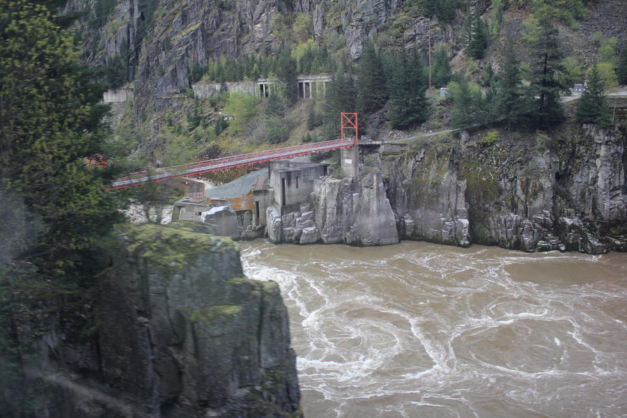 Von da an wurde es allmählich dunkel - was die Aussicht aber nicht schmälerte, nur das Fotografieren schwieriger machte. Faszinierend war die Stelle, als beide Eisenbahnstrecken den Fluss kreuzten um auf dem jeweils anderen Gleis weiterzufahren. Spannenderweise gab es da keine Weiche, um die Strecke zu wechseln, obwohl die Gleise kurz auf der selben Seite verliefen. Als es quasi schon dunkel war, ging es durch den White Canyon. Man konnte im Fast-Dunkel die Züge auf der Gegenseite schön beobachten wie sie sich am Hang über dem Abgrund ins Tal entlangschoben. Danach war es dunkel und es ging ab ins Bett.