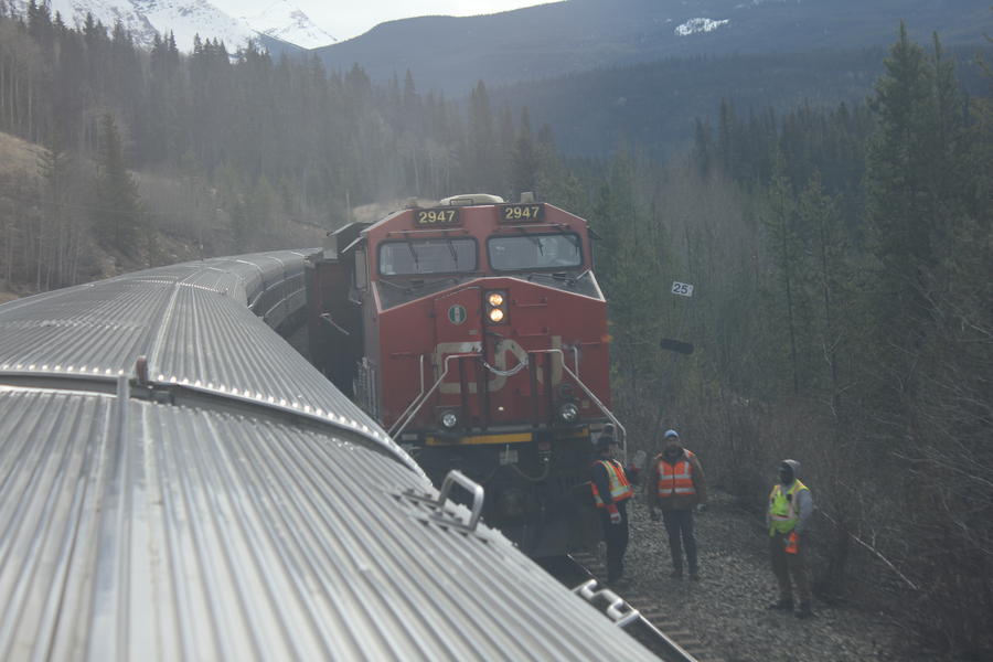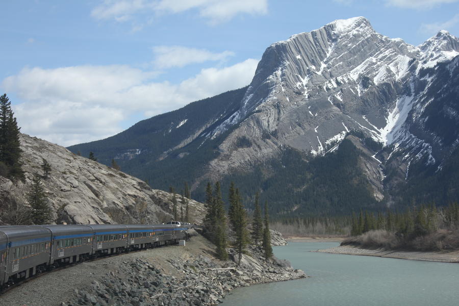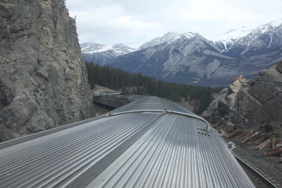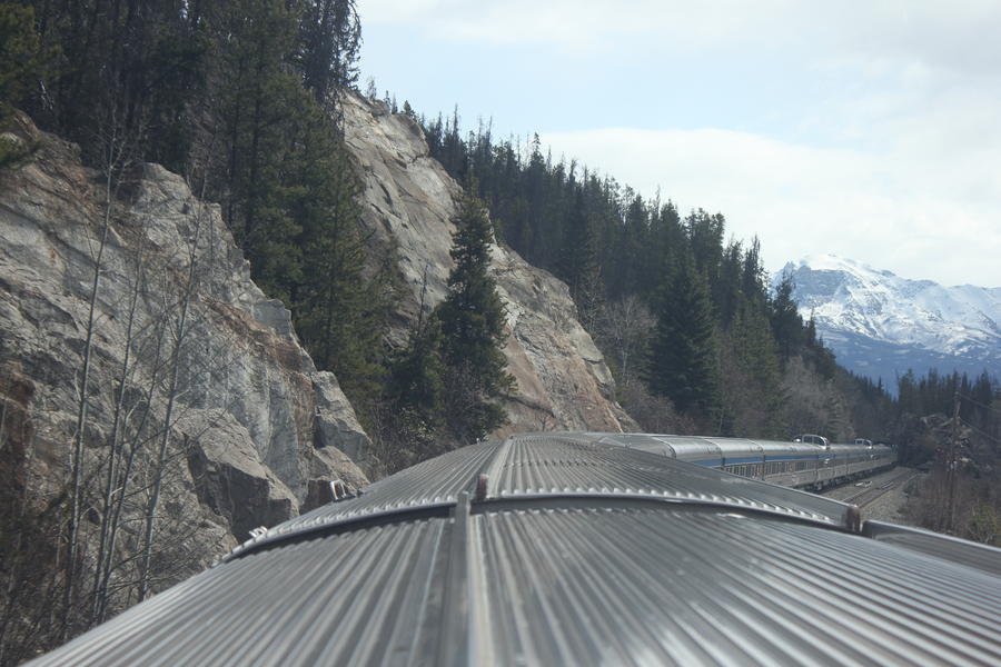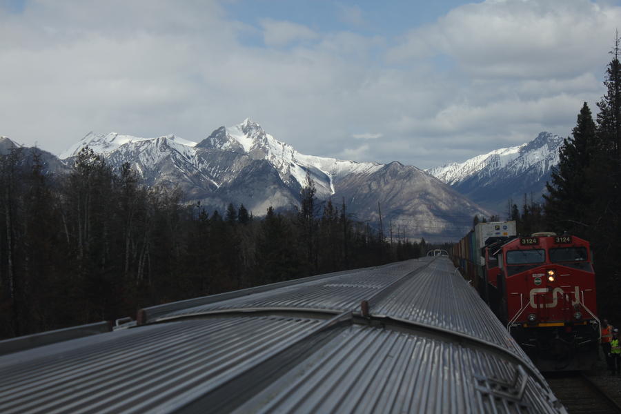 Nach dem Brunch ging es weiter die Rockys hinauf über die höchste Stelle der Reise auf 3710 Fuß über Meereslevel weiter Richtung Jasper. Unterwegs gab es sogar einen Schwarzbären zu sehen, den ich allerdings nicht gesehen hatte. Wie immer begegneten uns auch regelmäßig Frachtzüge - ab und zu hatten wir sogar das Glück, dass diese Züge auf uns warteten und nicht - wie sonst üblich - andersherum.