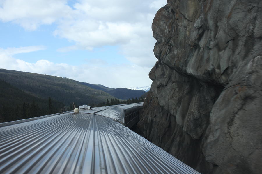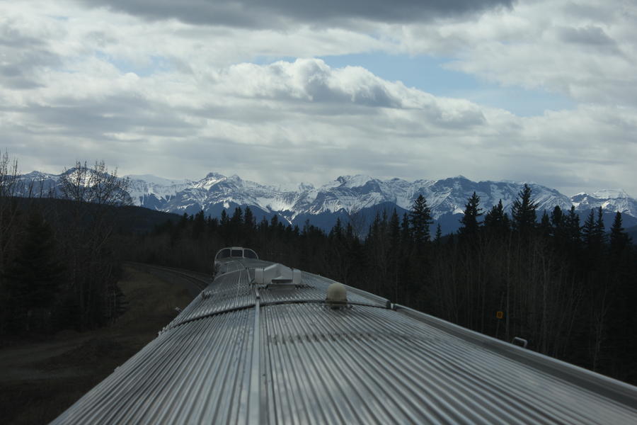 Als der Zug losfuhr, hatten sechs Passagiere die Abfahrt verpasst - diese wurden mit dem Taxi zur nächsten Stadt gebracht und hatten das zweifelhafte Vergnügen etwa 100€ fürs Taxi ausgeben zu dürfen. Nach Jasper sahen wir zwei Elchherden und zweimal Big Horn Sheeps - die Zwergziegen hielten sich leider etwas versteckt. Aber bald ging es schon durch "Disaster Point", den Tunnel, der uns aus dem Jasper National Park brachte und kurz darauf konnten wir die Rockys nur noch hinten aus dem Fenster beobachten.