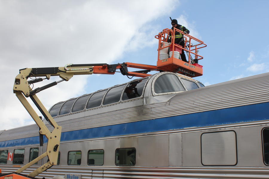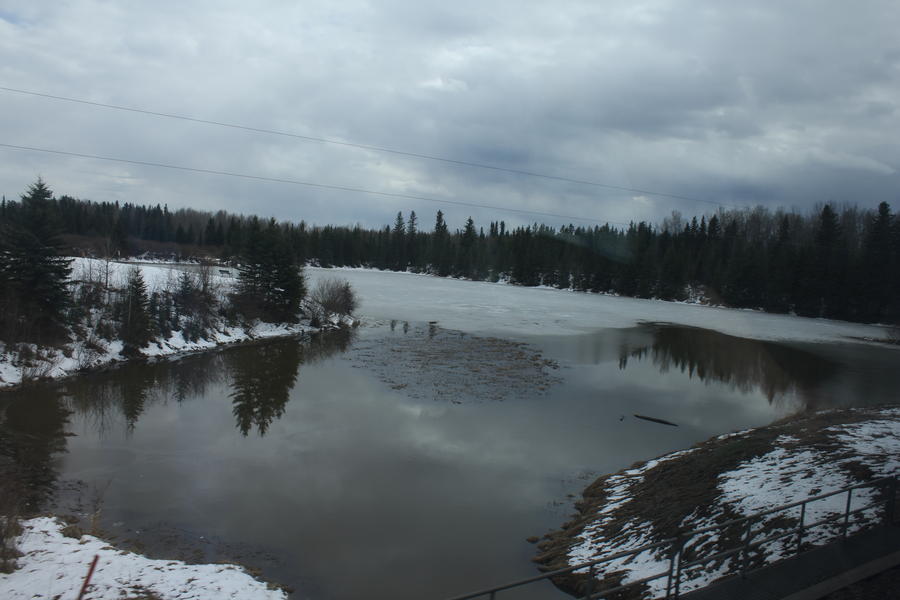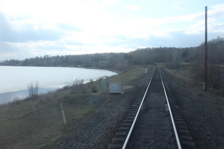 Auf der Fahrt weiter durch die Provinz Alberta gab es einen kleinen Vortrag über Alberta und lernten einige beeindruckende Fakten - unter anderem, dass ein einzelnes Ölsand-Ölgebiet (bei Fort McMurray) größer ist als das ganze UK. Ansonsten lebt Alberta von seinen natürlichen Rohstoffen - Öl, Erdgas, Landwirtschaft, Holz, Kohle und Tourismus in den Rockys. Ich hatte mich fürs Dritte Seating im Speisewagen angemeldet - aber das fiel aus, sodass ich im zweiten gelandet bin. Letzte Station des Abends war Edmonton - das Abendessen haben wir im Rangiervorfeld verbracht, bevor es schließlich in den (weit außerhalb der Stadt liegenden) Bahnhof ging.