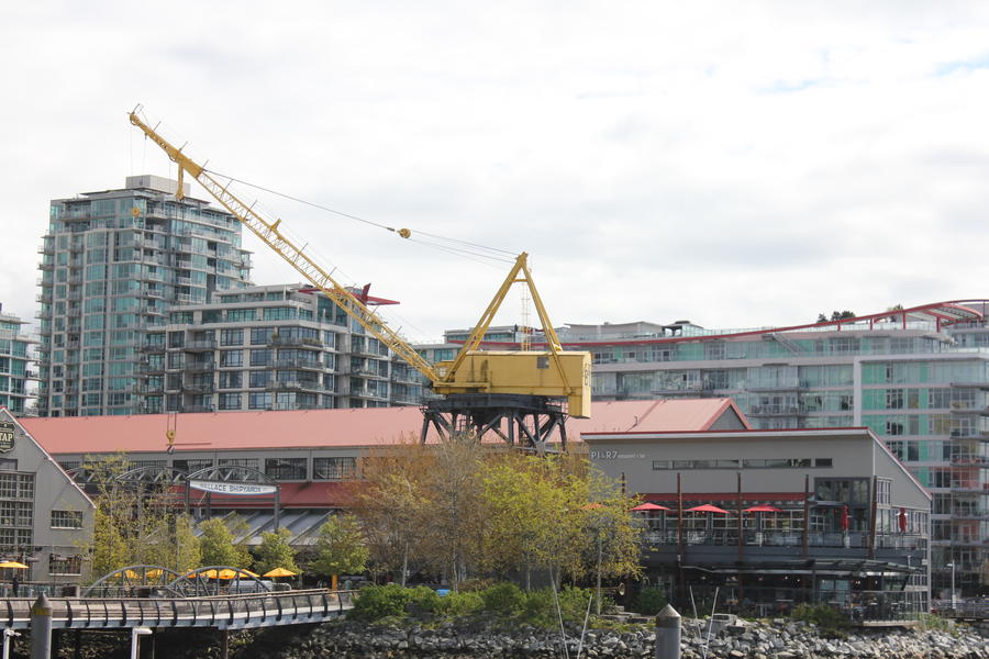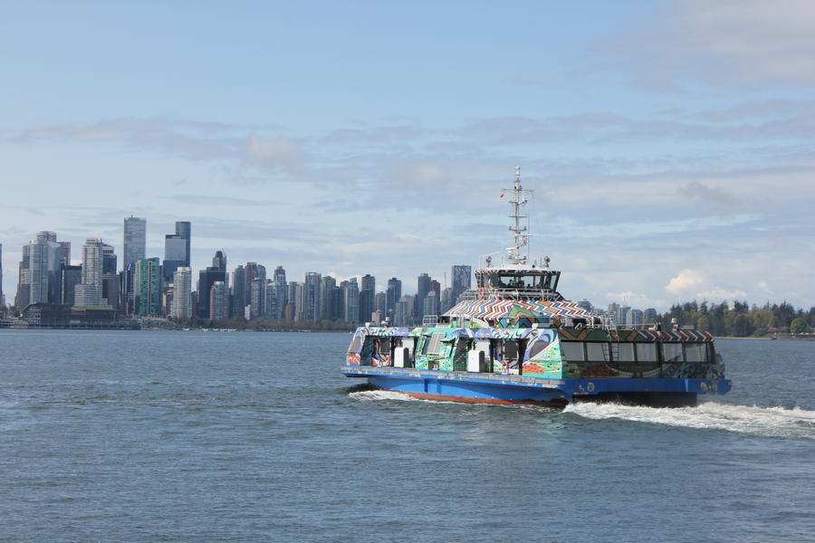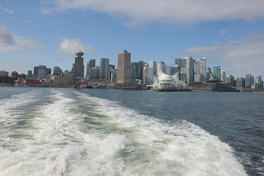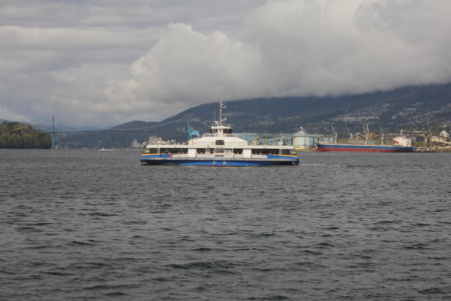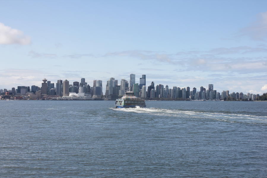Tag vier meiner Verkehrsträgerexpedition - nach Flugzeug, Fahrrad und Fähre habe ich mir heute ein Tagestickert für den Nahverkehr geholt. Zuerst ging es zur Waterfront und von dort mit dem Seabus, einer großen Personenfähre für 400 Menschen, nach Nord-Vancouver. Entgegen des Wetterberichts, der Regen erwarten ließ, hatte sich doch die Sonne rausgetraut und ich konnte einige schöne Bilder von der Skyline vom Wasser aus machen.