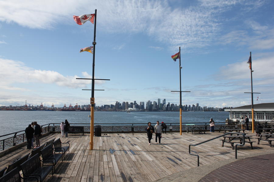 Auf der Nordseite des Inneren Hafen angekommen, machte ich einige schöne Fotos von der Aussichtsterasse dort, bevor ich spontan im Lonsdale Quay Market eine Runde einkaufen ging. Dort fand ich auch ein spätes Frühstück, das ich auf der Aussichtsterasse genossen habe.