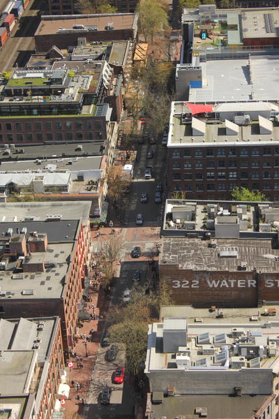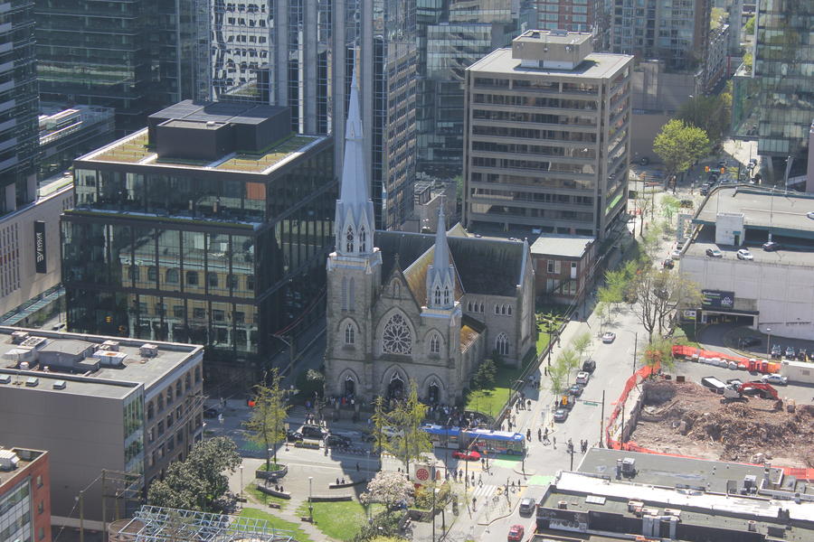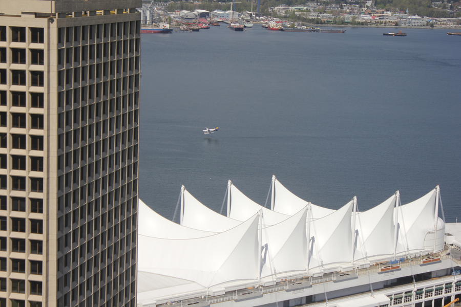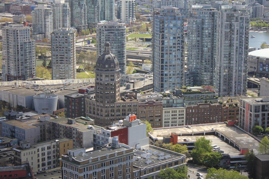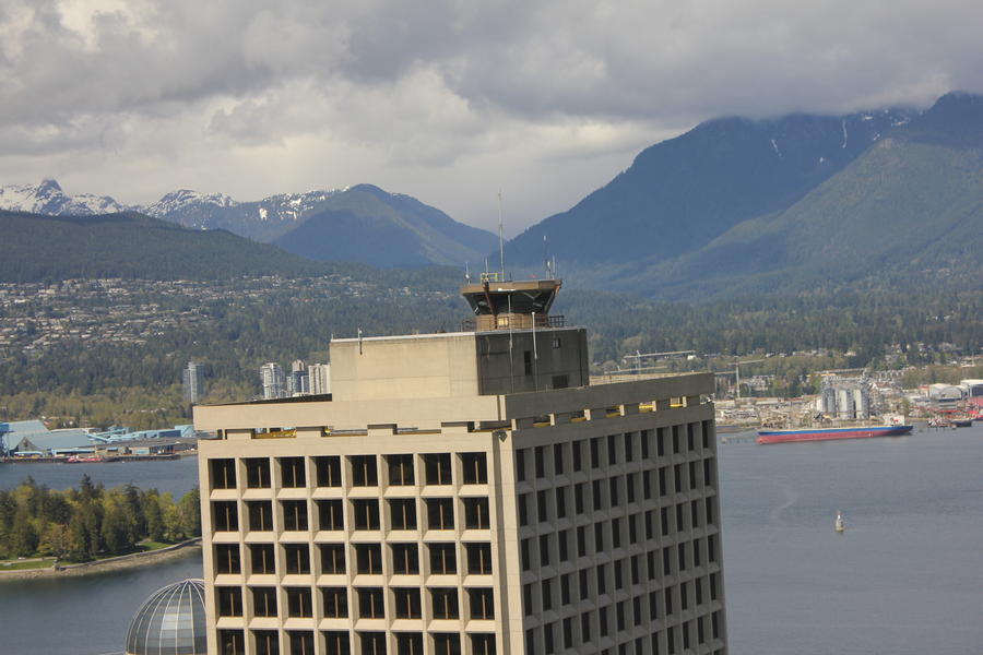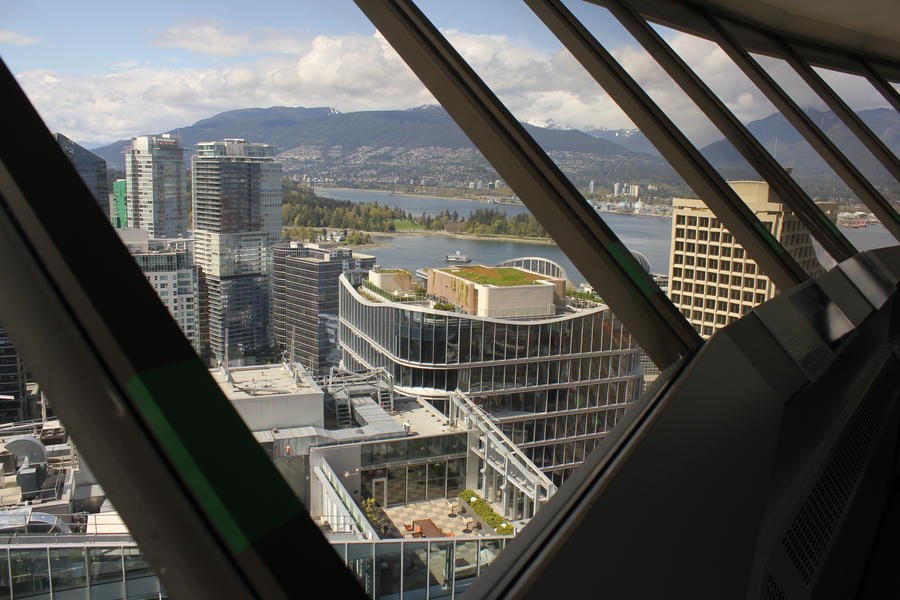 Dann ging es zurück mit dem Seabus nach Downtown. Da ich noch nie auf dem Vancouver Outlook war, ging es dort hinauf. Der Lookout wurde vom selben Architekten gebaut wie der CN-Tower in Toronto - die architektonische Verwandschaft ist unverkennbar. Von dort oben hat man eine tolle Aussicht über Vancouver.