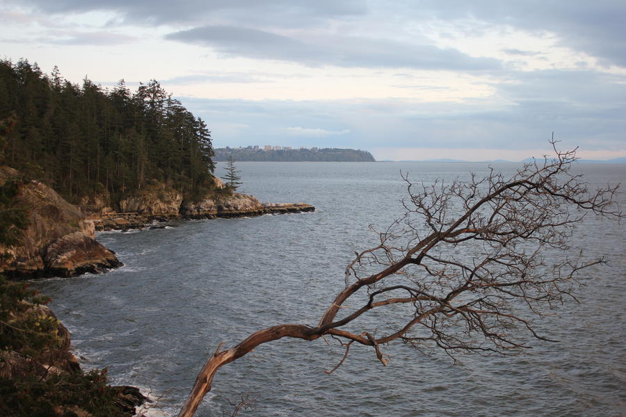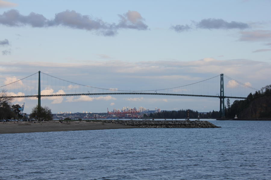 Mir kam spontan die Idee einen Modellbahnladen zu besuchen - im Internet habe ich in einer Vorstadt, in Richmond(?) einen nett wirkenden Laden gefunden, Pacific Scale Rail. Da ich ja eh ein Tagesticket hatte, hielt ich das für eine gute Idee. Allerdings war das ein kalter - dort, wo angeblich der Laden sein soll - steht ein relativ neu gebautes Wohngebäude. Vielleicht erklärt das auch, weshalb der Laden auf Google Maps nicht auffindbar war. Also ging es zurück nach Vancouver und durch den Stanley-Park auf die andere Seite, dieses Mal nach West-Vancouver. Dort machte ich einen kurzen Zwischenstopp und kaufte neue Kopfhörer für den Zug und machte einen kleinen Spaziergang am Ufer.