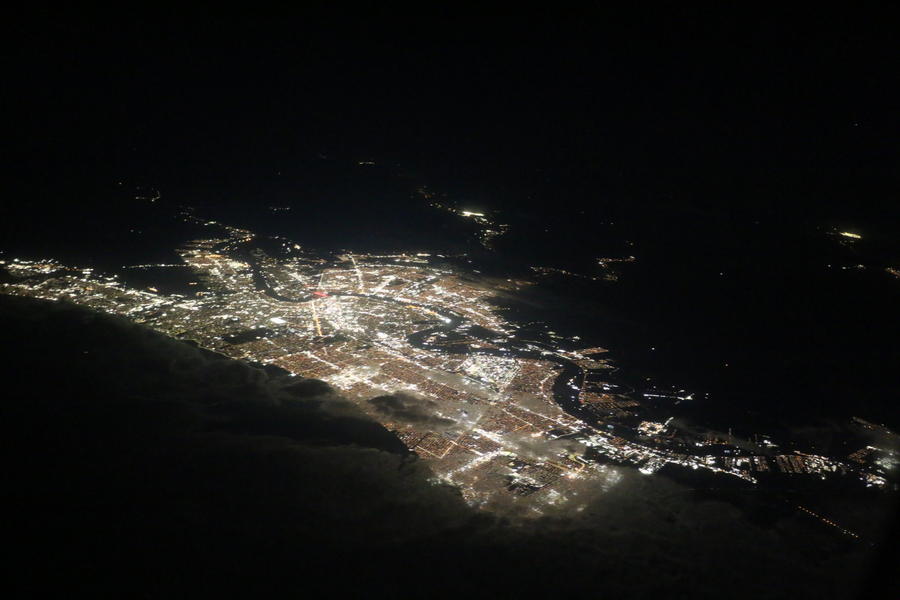 Nach der ersten Hälfte Weihnachten in Tamm geht es dieses Jahr für die zweite Hälfte Weihnachten nach Mexiko. Nach einem frühen kleinen Frühstück ging es mit dem Zug nach Frankfurt. Auf dem Weg nach Frankfurt erreichte uns die Nachricht, dass unser Flug nach Mexiko fast zwei Stunden verspätet sein würde, da noch ein Temperatursensor am Triebwerk getauscht werden musste. Dafür wurden wir am Gate von unserer 747-800 mit offener Triebwerksverkleidung begrüßt - kein alltägliches Bild am Gate. Da wir auf der Waitlist waren, mussten wir noch etwas zittern, ob wir mitkommen - aber letztlich waren wir beide an Bord. Die Weihnachtsgans war sehr lecker und wir konnten unterwegs zumindest die Hälfte unserer Verspätung wieder gut machen. Sowohl vor als auch nach dem Essen hatten wir immer wieder eine tolle Aussicht. Nachdem wir in México eingereist waren, wurden wir zum Glück abgeholt und dann ging es relativ bald ins Bett - der Tag war ja schon fast 24 Stunden lang.